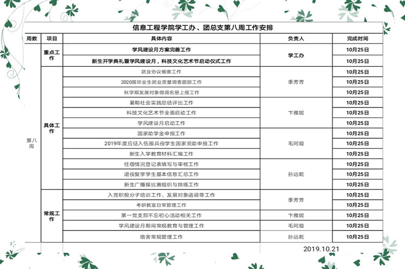我院学工办、团总支第八周工作安排