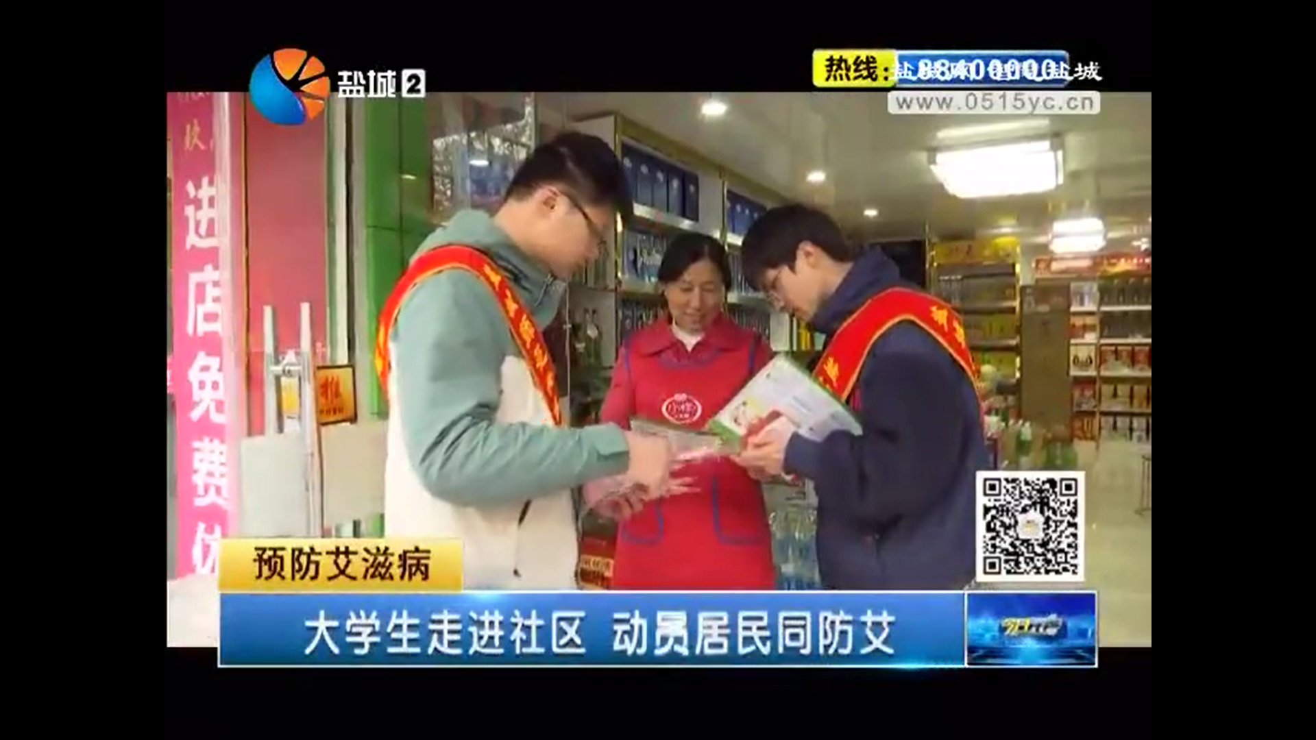 12月1日,金沙集团1862cc成色青年志愿者协会到亭湖区大洋街道玉龙公园社区开展了“社区动员同防艾,健康中国我行动”的宣传活动,盐城电视二套报道了本次活动。