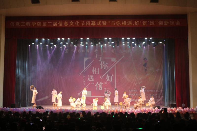 12月15日下午, 我院第二届信息文化节暨“与你相遇,好‘信’运”迎新晚会在通榆校区南苑大礼堂成功举办。学院党总支书记殷凤春,党总支副书记、副院长赵任凭,副院长周彩根,全体辅导员老师、新生班主任以及大一、大二学生观看了此次晚会。
