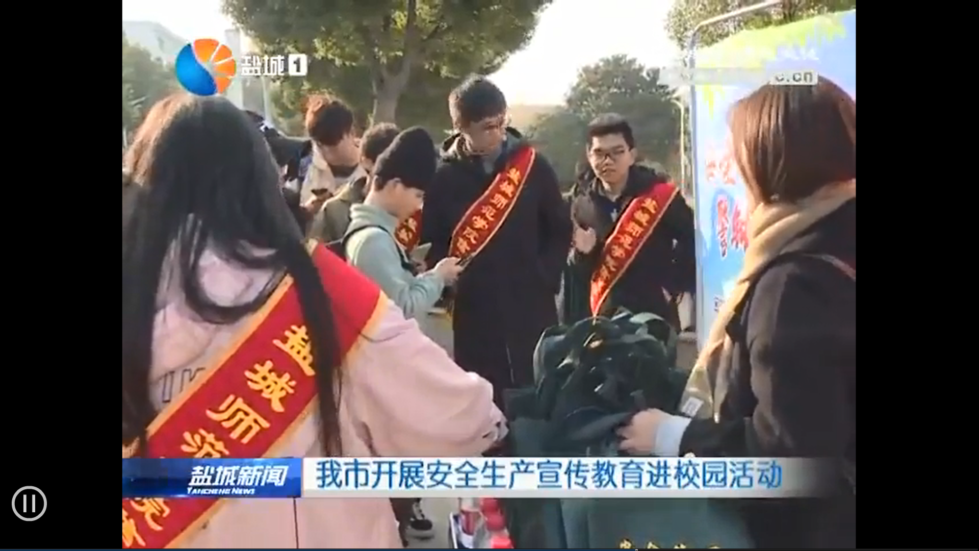 12月28日下午,我校携手盐城市应急管理局于通榆校区组织开展安全生产宣传教育进校园活动。盐城电视台特别报道了本次活动。