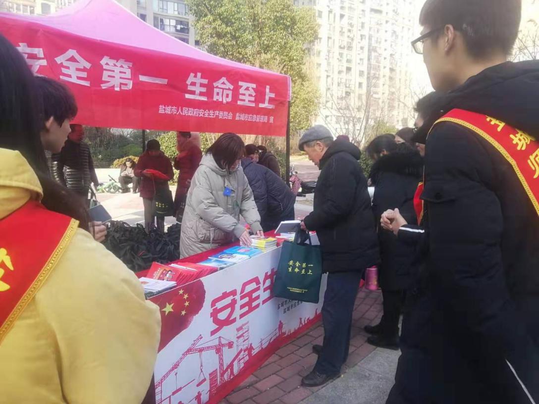 1月7日下午,我院携手盐城市应急管理局于盐城市海德公园社区组织开展安全生产宣传教育进社区寒假社会实践活动。盐城市应急管理局办公室工作人员、我院青年志愿者、海德公园社区居民等参加活动。