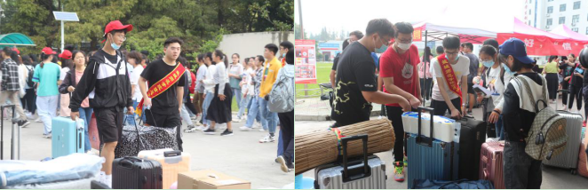 面带微笑,至诚服务,做新生引路人——学院在报道登记区根据班级、专业,设置相应接待点,新生班主任助理现场核查苏康码、录取通知书等材料。迎新工作如火如荼,学生志愿者“一对一服务”,主动上前帮助新生搬运手中的行李,让新生们充分感受到学院周到的安排。
