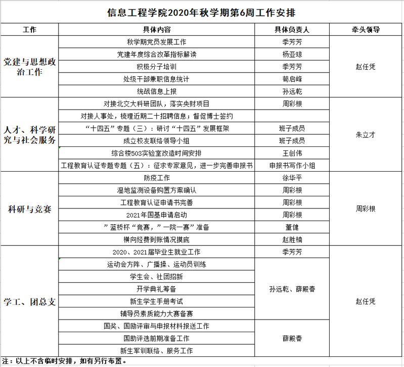 我院2020年秋学期第6周工作安排