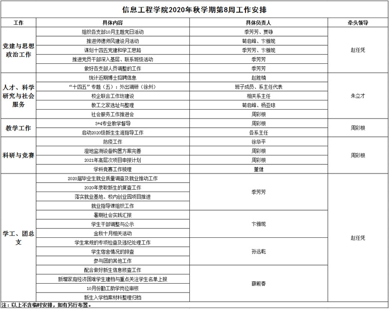 我院2020年秋学期第8周工作安排