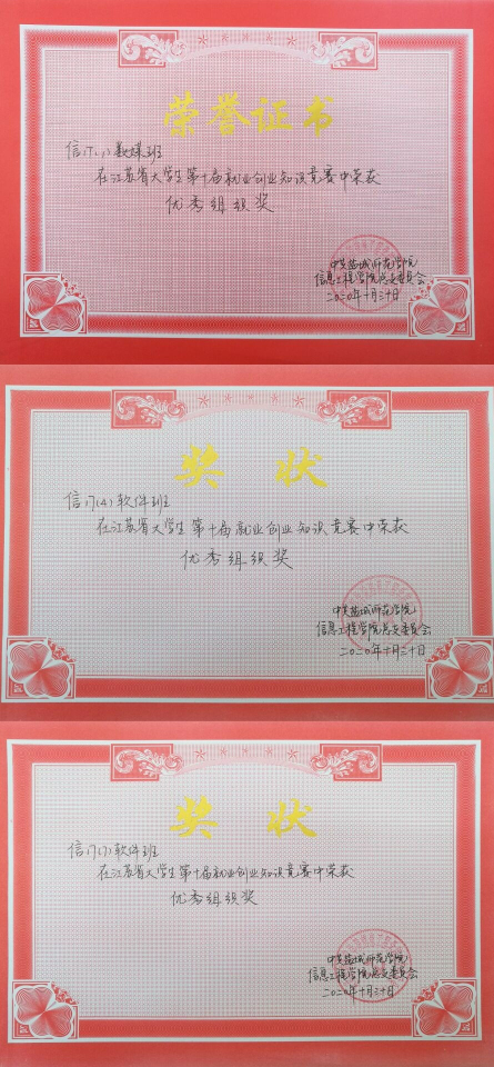 加强考评,调动学生参赛积极性。根据竞赛得分和每日学习积分排名,评选出软件174班李昌宴等21名同学获得“就创业知识竞赛先进个人”称号;根据班级满分率和平均分排名,评选出软件174班、软件177班、计算机171班获得 “就创业知识竞赛优秀组织奖”。评比与表彰活动激发了全体学生的竞赛热情,2017级学生371名同学全部参加了知识竞赛,共有103位同学竞赛得分为满分,33名同学学习积分超过120分;学院参赛率100%,平均分83.8分,排名位居学校前列。