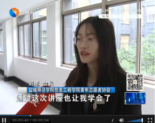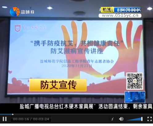 盐城师范学院卫生所所长主任医师 张跃敏:“作为大学生,对这个艾滋病要有一定的认知,掌握相关的知识。更要在生活当中做到自尊自爱,树立正确的人生观,正确的性取向,远离艾滋病,杜绝毒品,让我们的校园干净整洁健康。”