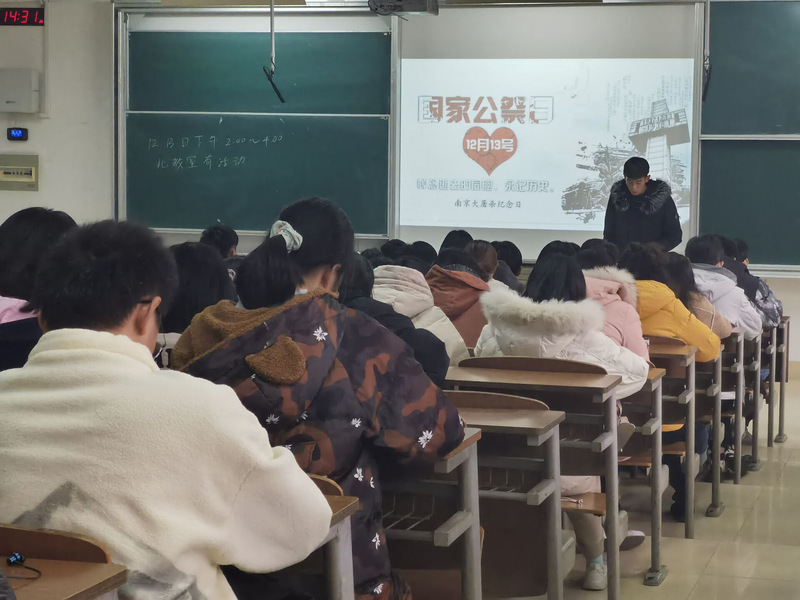 12月13日,我院在主楼B311教室组织开展“勿忘历史,做时代新人”国家公祭日主题教育活动。学院大一、大二学生参与。